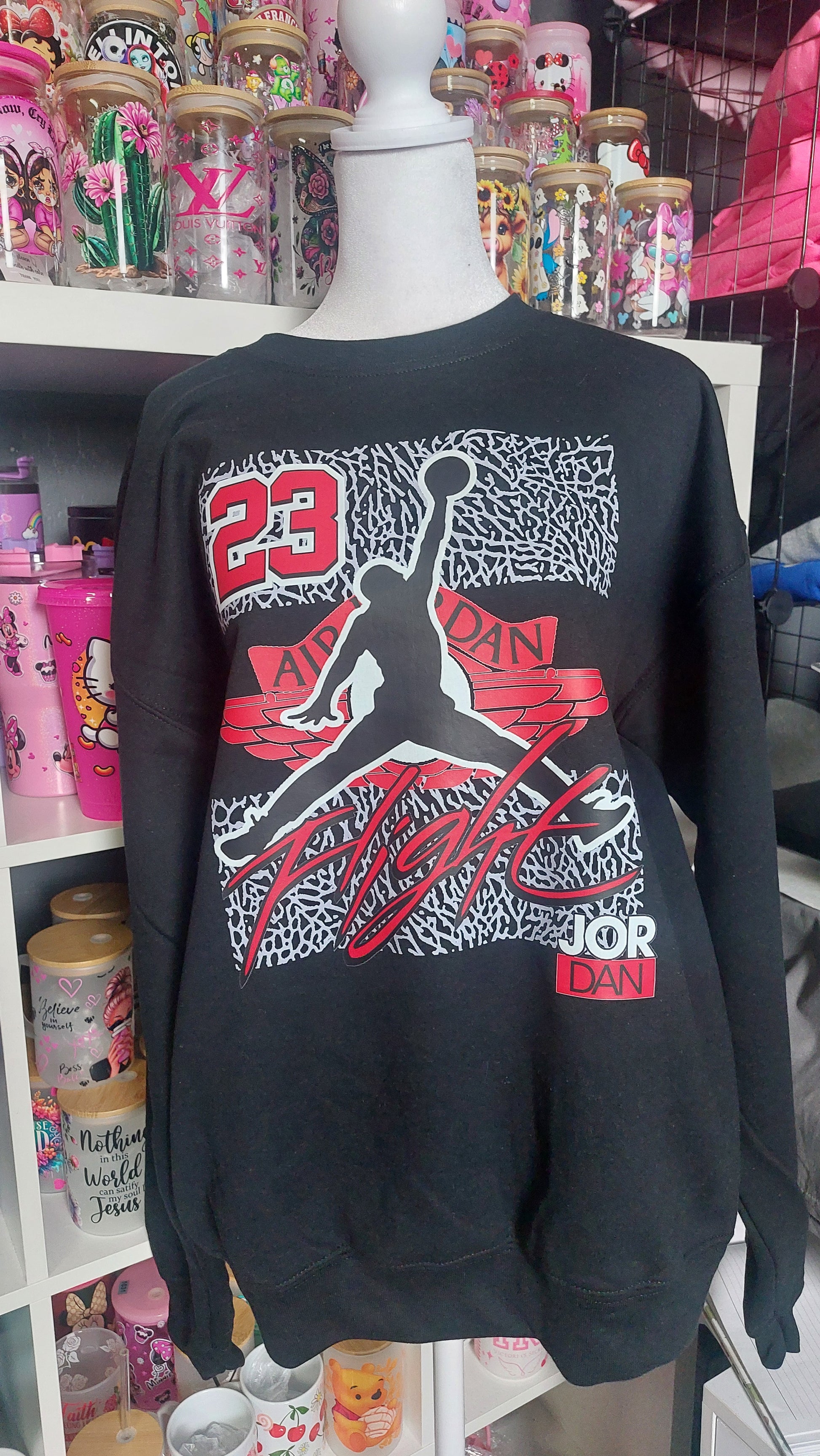 A very cute, ready-to-go crew neck sweater made with a DTF transfer design.